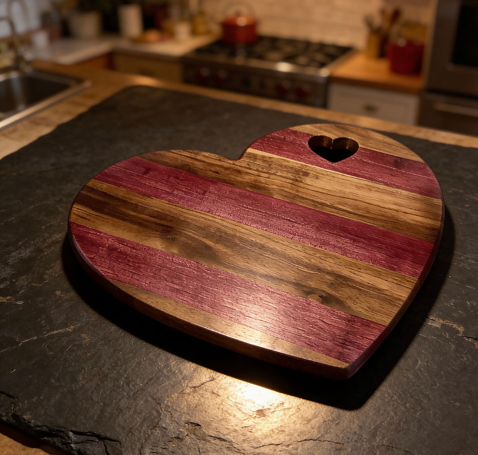 Heart‑Shaped Cutting Board-Purple Heart & Walnut